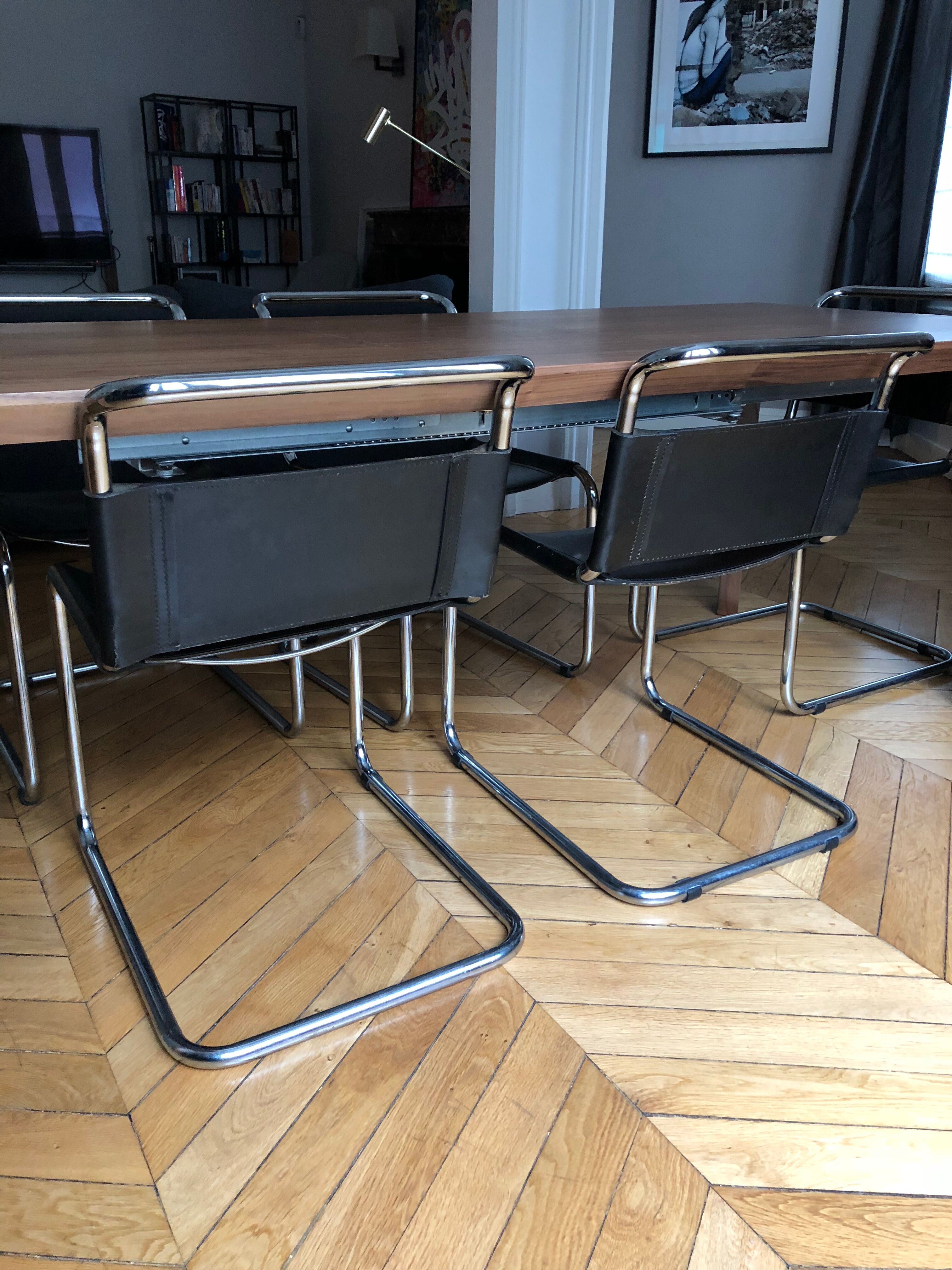 Voir cette épingle et d'autres images dans bauhaus par karel jinda. Voir cette épingle et d'autres images dans bauhaus par karel jinda. Soyez le premier à laisser votre avis sur. Chaise vintage style marcel breuer en bon état cédée fr 79. Chaises vintage en cuir pour salle à manger ou autres. En cuir marron, associé à la structure en tubes métalliques popularisée par son contemporain marcel breuer, c'est un exemple de chaise de style. Cest la fonctionnalite et la simplicite qui priment dans cette deco. Chaise vintage wassily en cuir noir par marcel breuer pour fasem. Une large gamme de chaises en cuir pour satisfaire toutes les envies. Chaises breuer en cuir / fauteuil type breuer muros design et vintage en bourgogne. La chaise wassily, comme beaucoup d'autres objets de design du mouvement moderne , a été produite en série à partir des années 1960. Bonjour, a vendre 5 chaises de marcel breuer, model crée en 1928 et appellé b33. Chaises b3 wassily en cuir cognac par marcel breuer pour knoll inc.